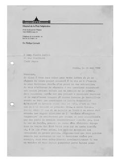 Dans la vitrine : lettre de 4 pages du Dr Philippe Gérault à Henry-Pierre Bertin