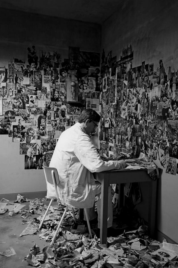 L'image de couverture montre Ferrée travaillant sur le collage : Nulle part