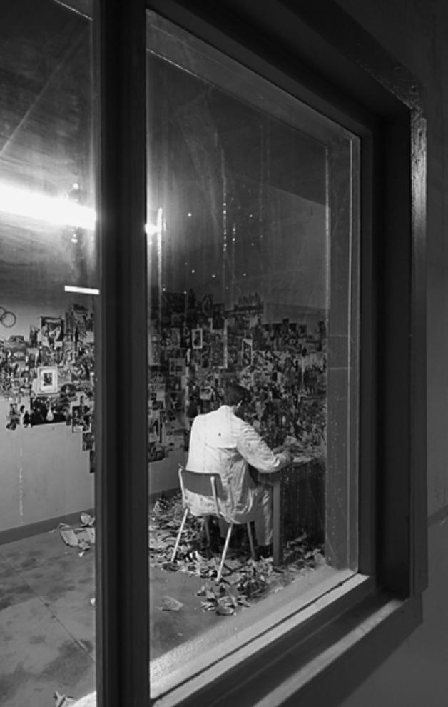L'image de couverture montre Ferrée travaillant sur le collage : Nulle part