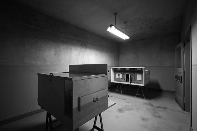 Chambre 1. Maquette Rue Général de Clerc, Lorquin, 1966, en arrière-plan, sur le